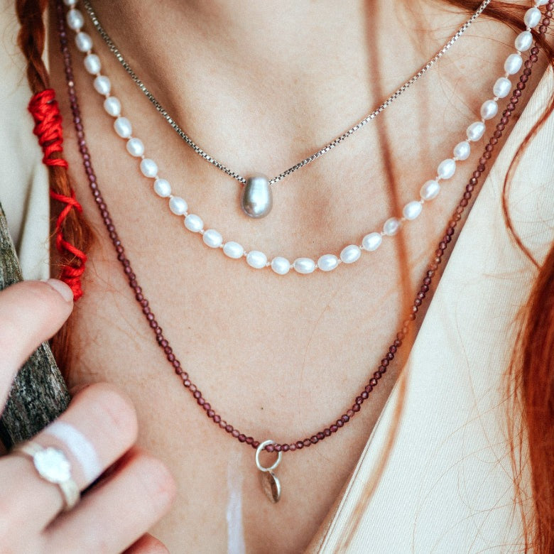 Elegante zarte Venezianerkette mit grau-schimmernder Süßwasserperle. Diese Kette ist ein perfektes Geschenk und wird mit einer unserer typischen SALD- harzmade Schmuckdesign Schachteln versendet.