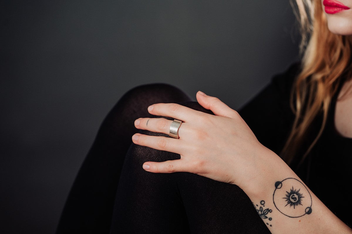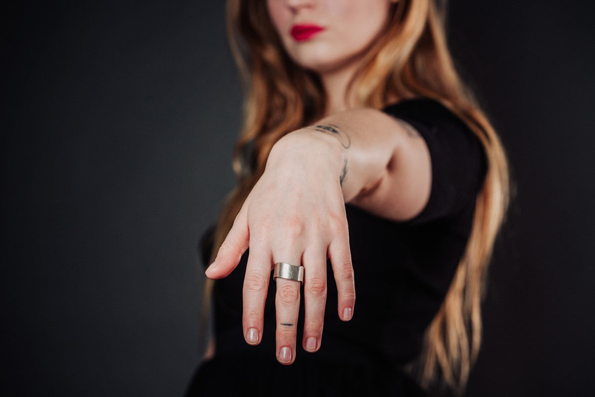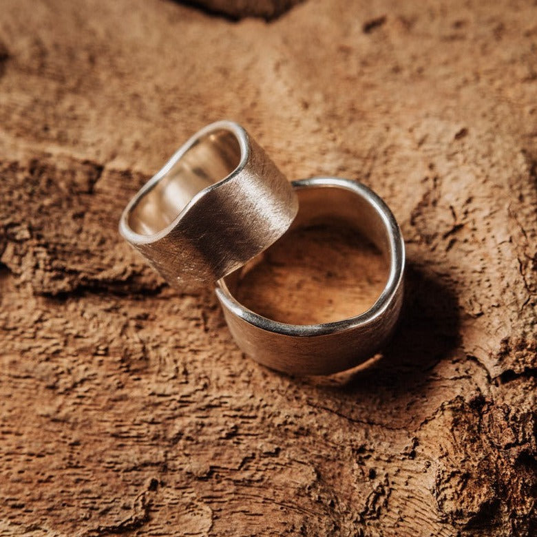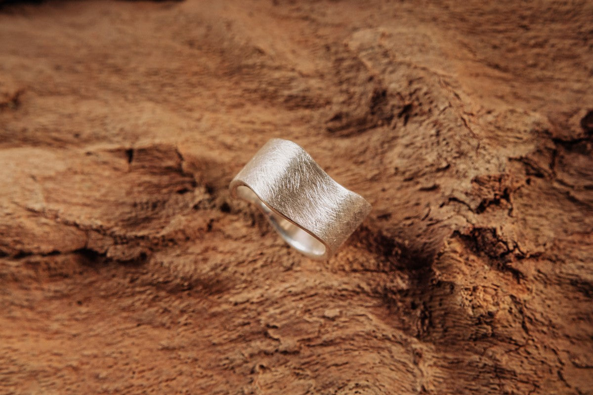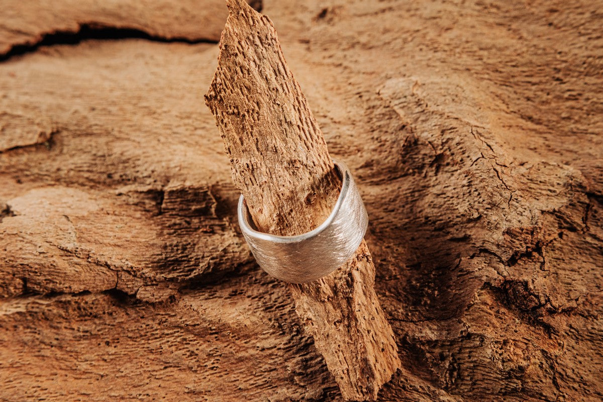 Der Silberring 'Curvy' besticht durch sein funkeln und die gewollt organische Form. Er ist voluminös und gleichzeitig sehr angenehm zu tragen. Diesen außergewöhnlichen Ring fertigen wir auch gerne als Freundschafts- oder Trauringe an. Er wird nicht aus einem gegossenen Ringrohling herstellt, sondern komplett von Hand gefertigt. Daher ist jeder Curvy Ring ein Unikat.