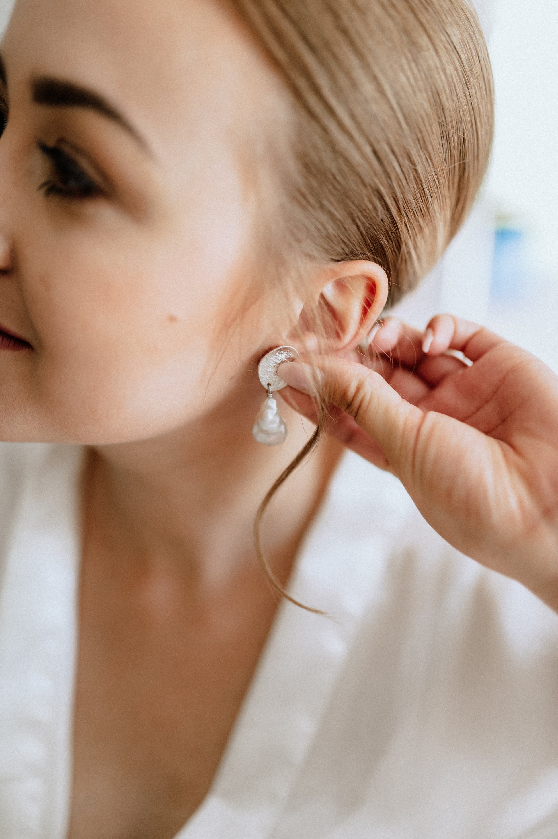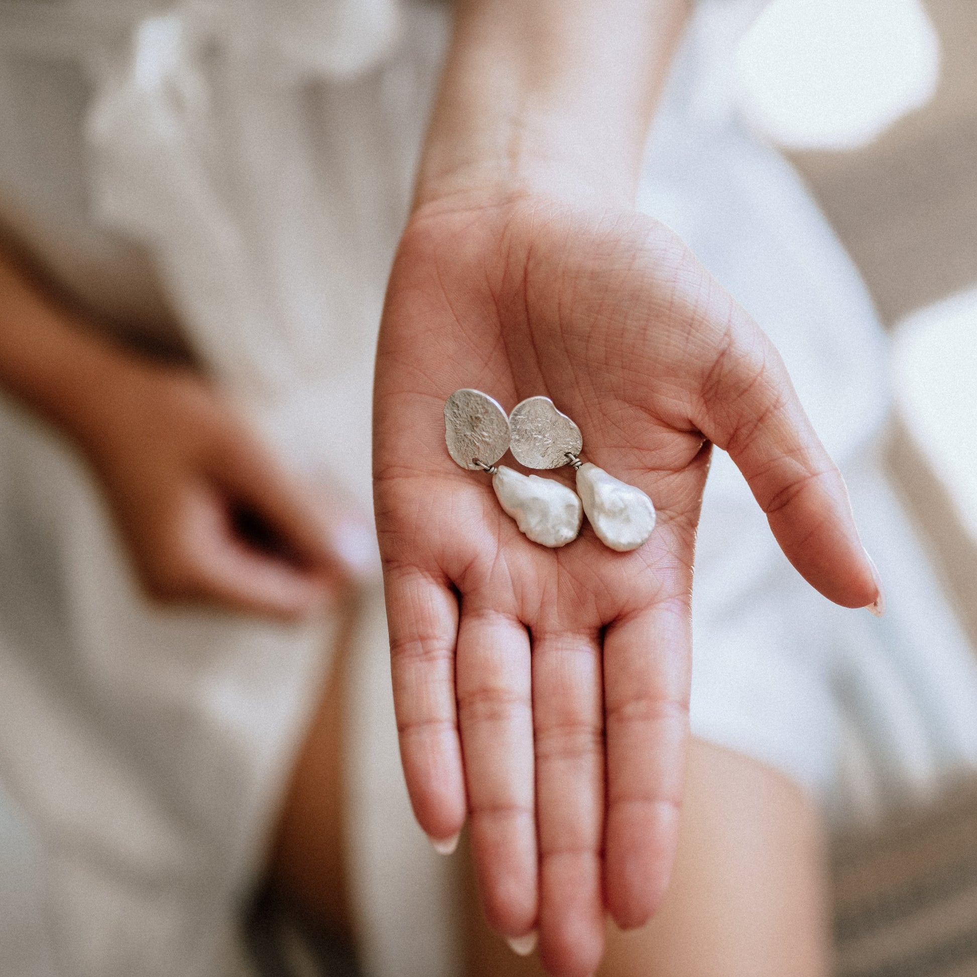 Diese Ohrstecker strahlen durch die Süßwasserperlen eine besondere Eleganz aus, in Kombination mit unseren 'Unrunden' sind die Ohrringe der perfekte Alltagsbegleiter - modern und elegant. Die Oberfläche ist mit einer bestimmten Schmelztechnik bearbeitet worden, wodurch diese gewollt zufälligen und reizvollen Muster entstanden sind.