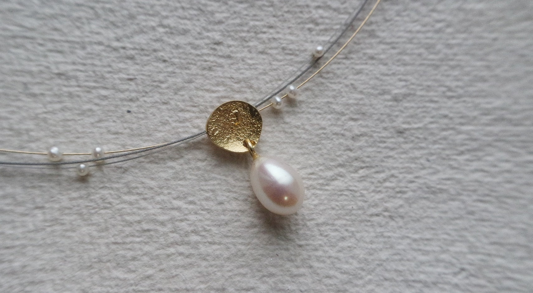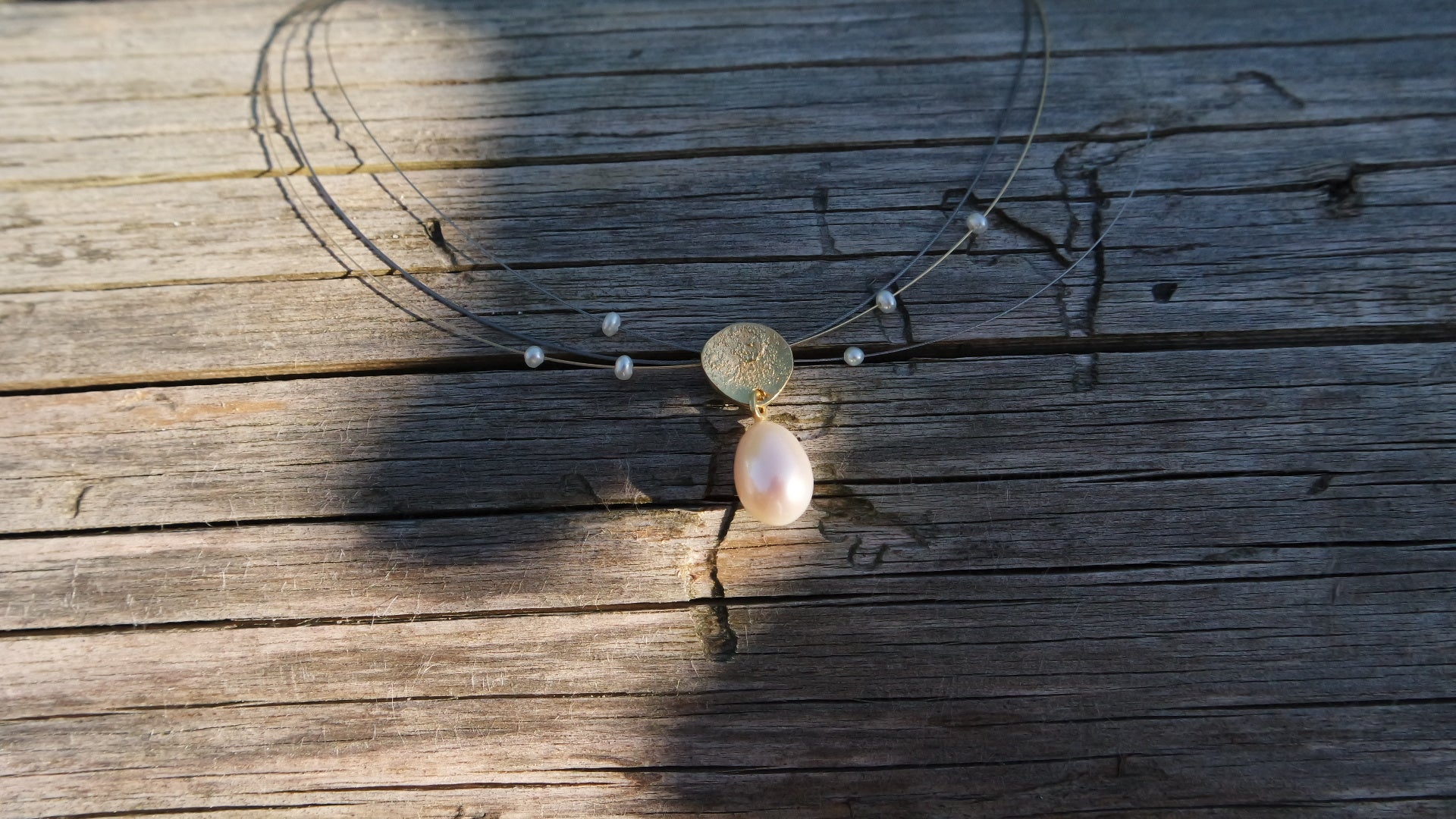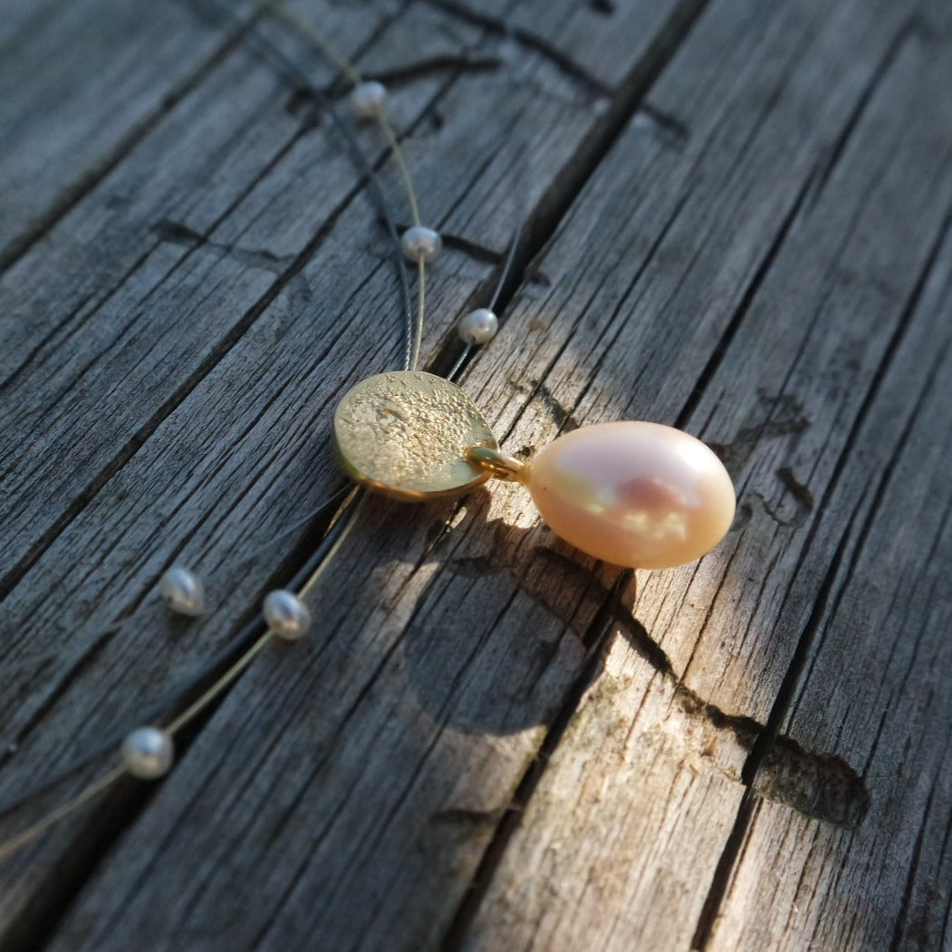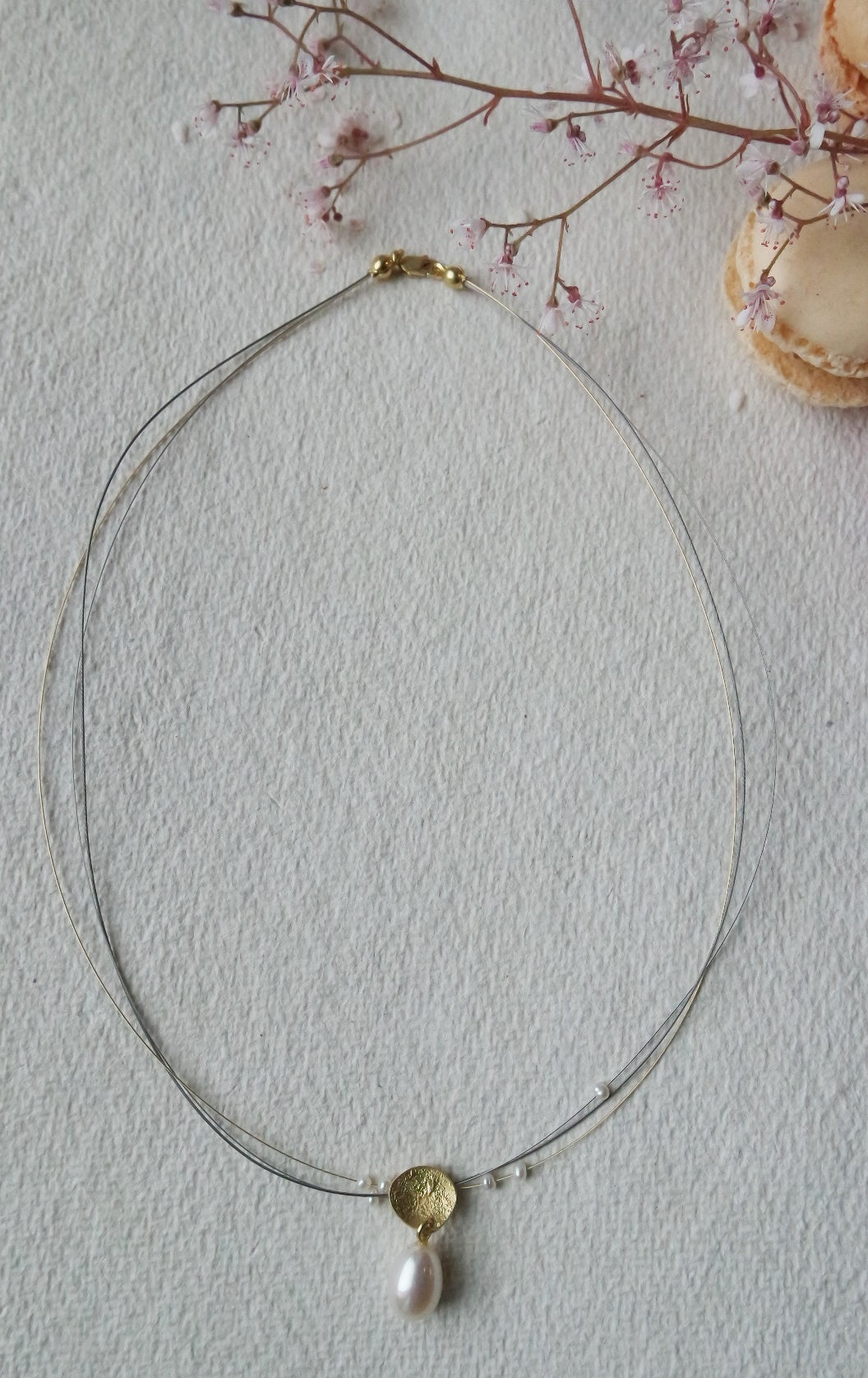 Material: 925 Recycling Silber 585 Gelbgold vergoldet, Süßwasserperle Creme, Akoyaperlen, Edelstahlseil ummantelt