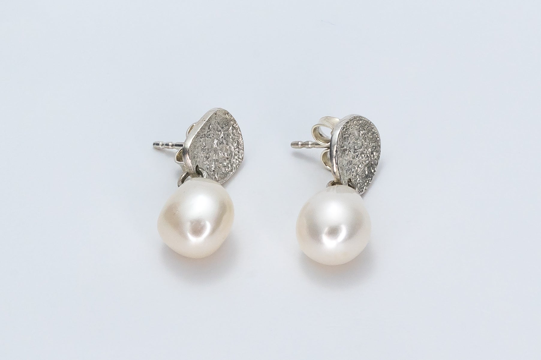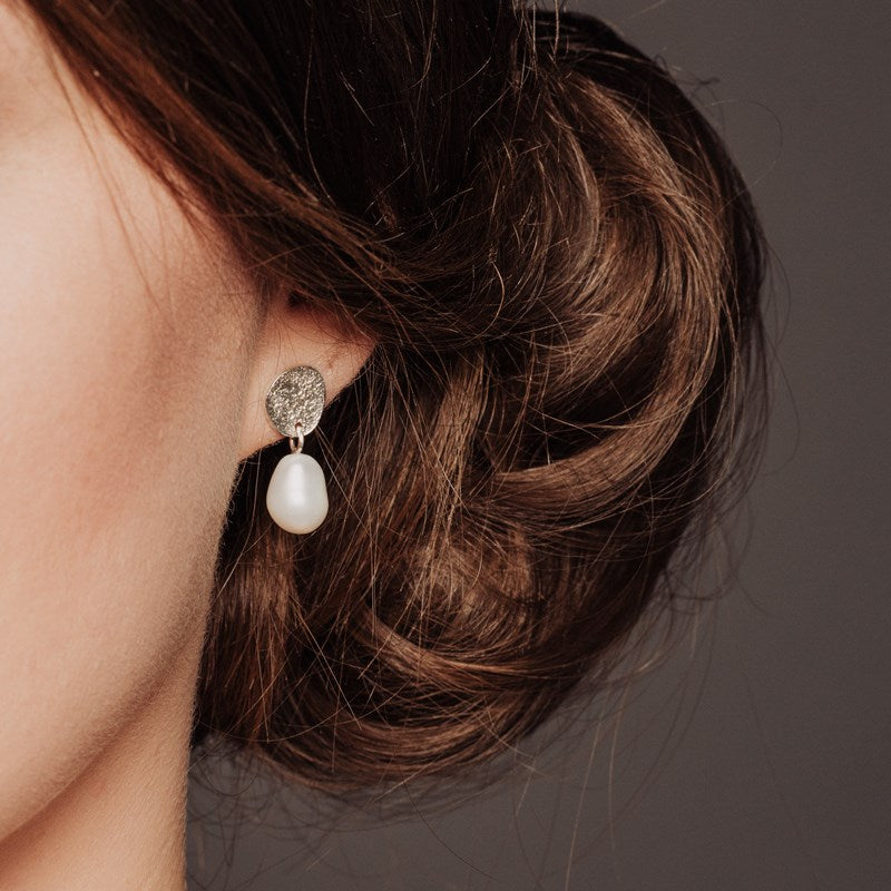 Diese Ohrstecker strahlen durch die Süßwasserperlen eine besondere Eleganz aus, in Kombination mit unseren 'Unrunden' sind die Ohrringe der perfekte Alltagsbegleiter - modern und elegant. Die Oberfläche ist mit einer bestimmten Schmelztechnik bearbeitet worden, wodurch diese gewollt zufälligen und reizvollen Muster entstanden sind.