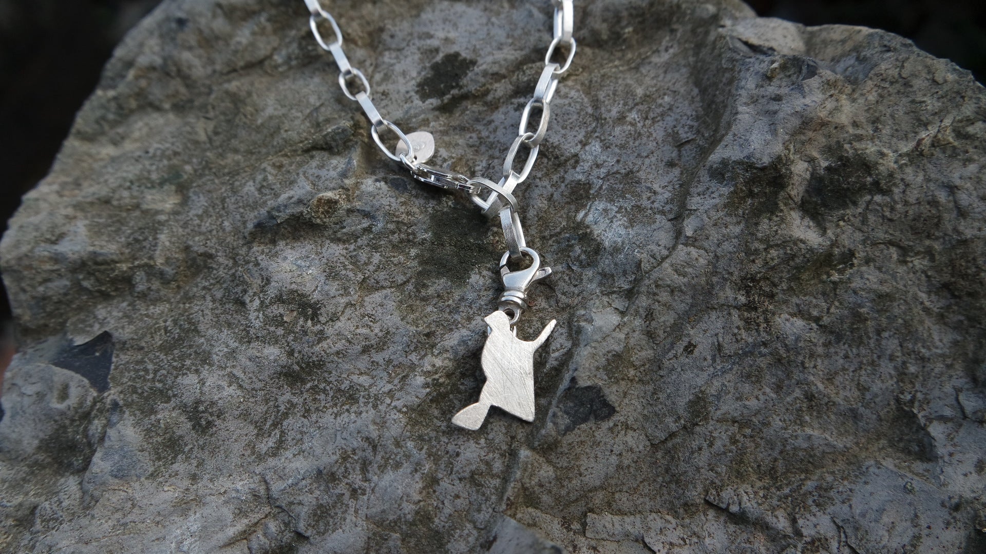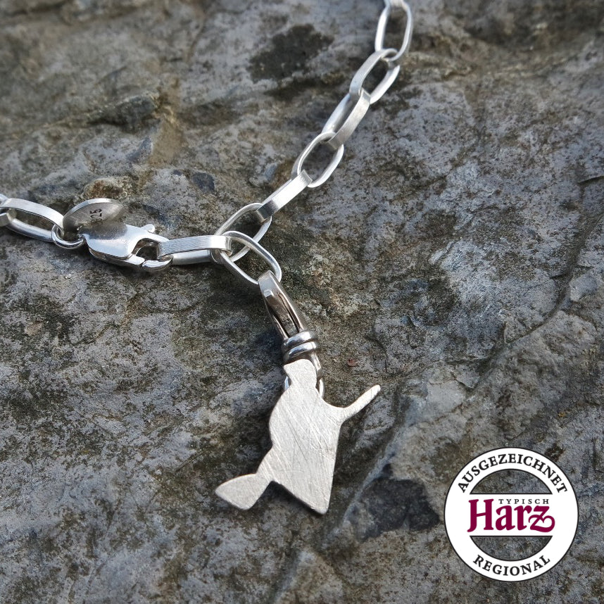Verzaubere deinen Look mit unserem silbernen Hexenanhänger an einem edlen Ankerkettenarmband mit Karabinerverschluss. Inspiriert von der legendären Brockenhexe, ist dieser Anhänger ein minimalistisches Kunstwerk aus recyceltem 925er Silber mit einer eismatten Oberfläche. Das Armband ist größenverstellbar.