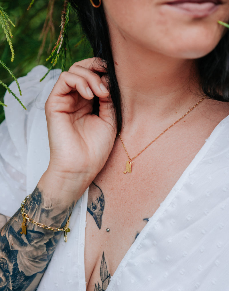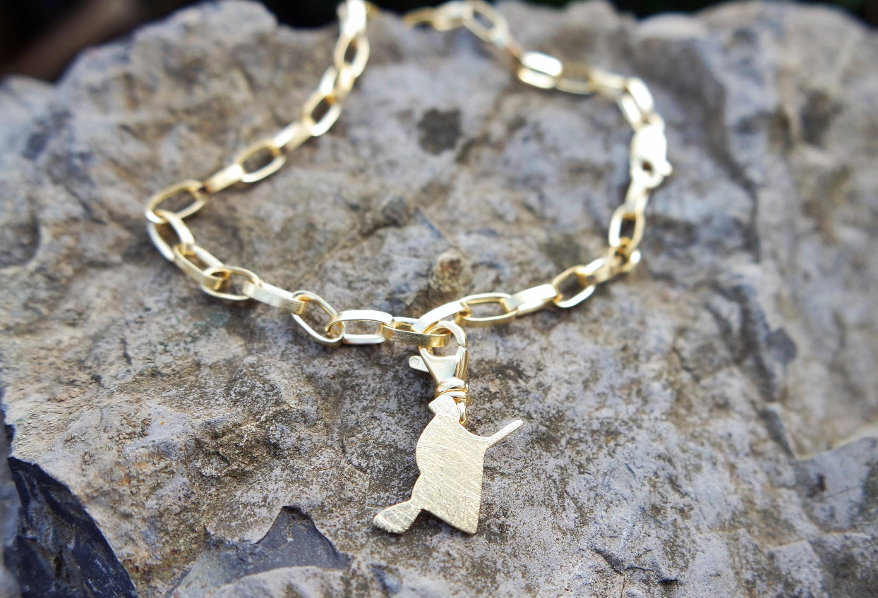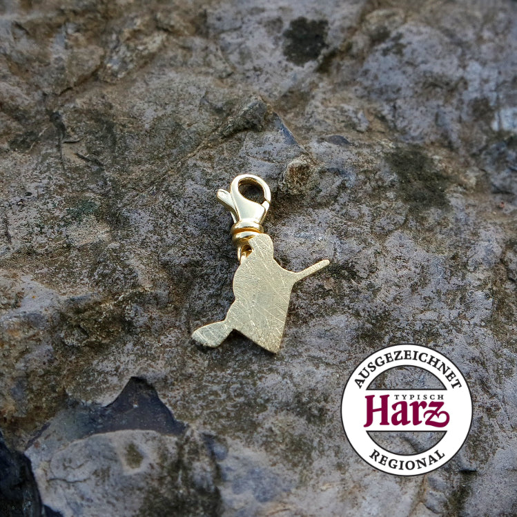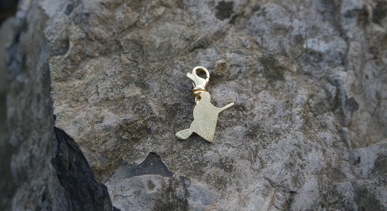 Verzaubere deinen Look mit dem silbernen Hexencharm mit Karabinerverschluss! Inspiriert von der legendären Brockenhexe, ist dieser Anhänger ein minimalistisches Kunstwerk aus recyceltem 925er Silber mit einer 585er Vergoldung und einer eismatten Oberfläche.