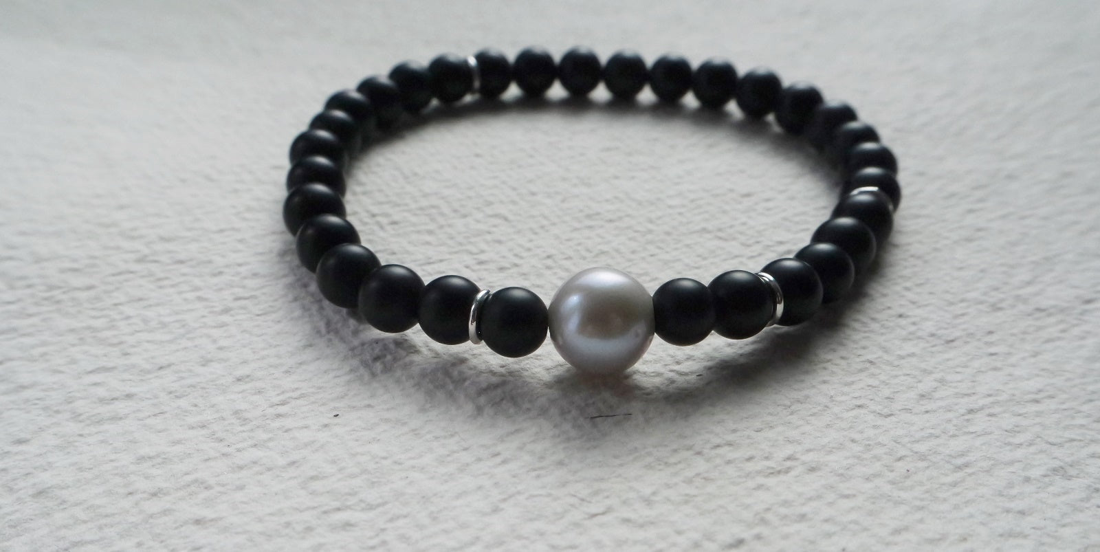 Dieses lässige Strech-Onyxarmband ist der perfekte Alltagsbegleiter für Sie & Ihn. Die weiße Süßwasserperle ist der perfekte Kontrast zu dem mattierten Onyx in Kugelform. Silberne Elemente verzieren das Armband.