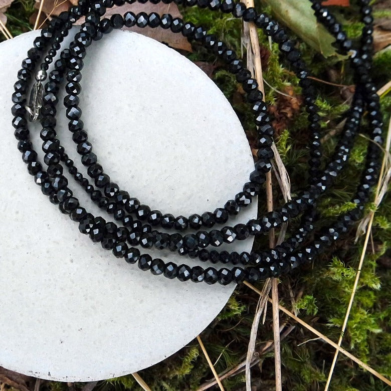 Dieses zeitlose Edelstein-Collier aus schwarzen, facettierten Spinellronden verleiht jedem Outfit das gewisse funkelnde Extra. Jede Bestellung wird in unserer exklusiven SALD harzmade Schmuckdesign Schachtel versendet.